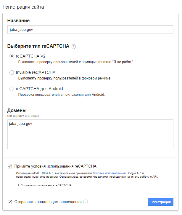 ВНИМАНИЕ! Мы использовали только reCAPTCHA V2. Как работают Invisible и Android мы здесь не рассматриваем.
