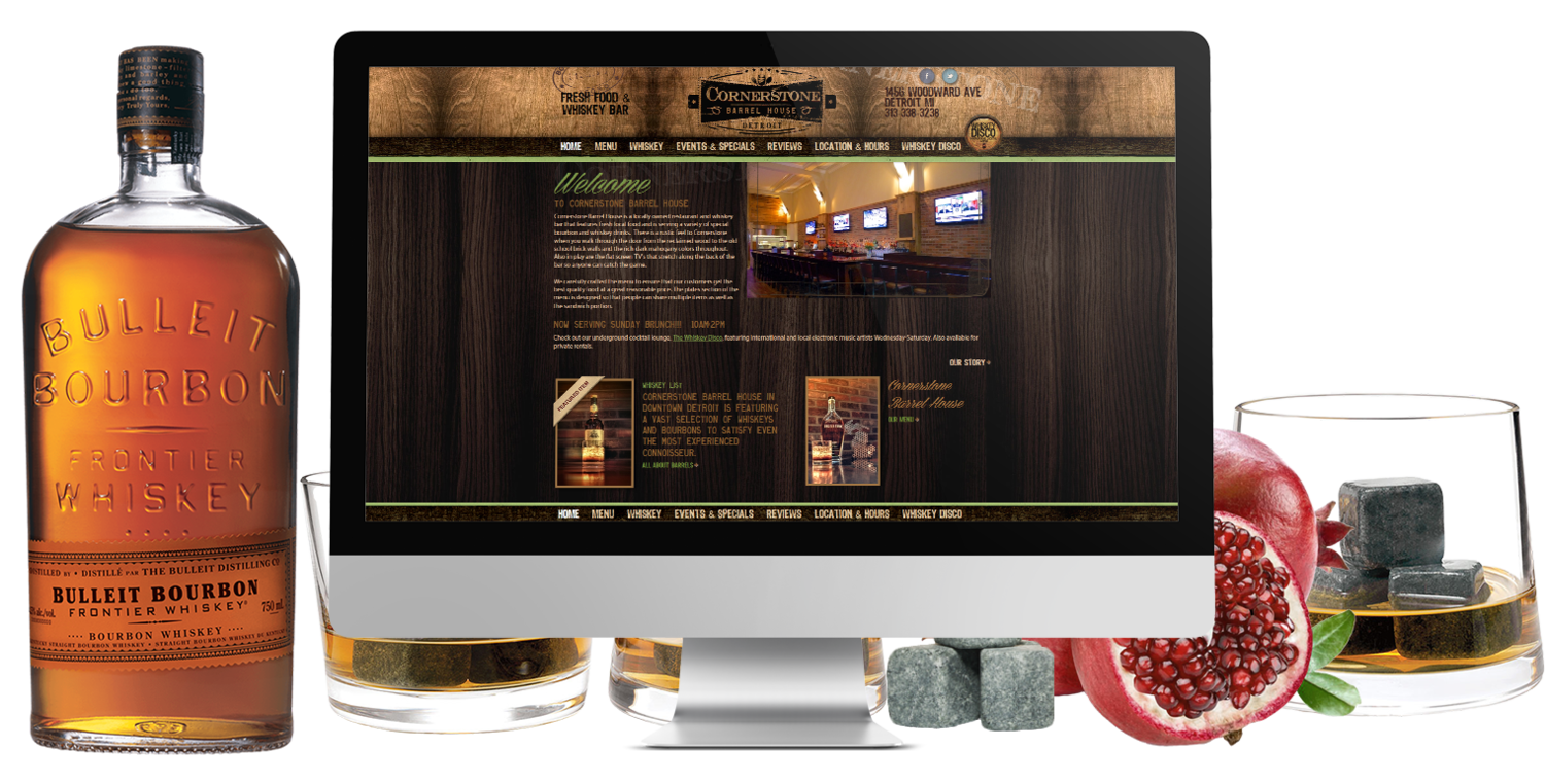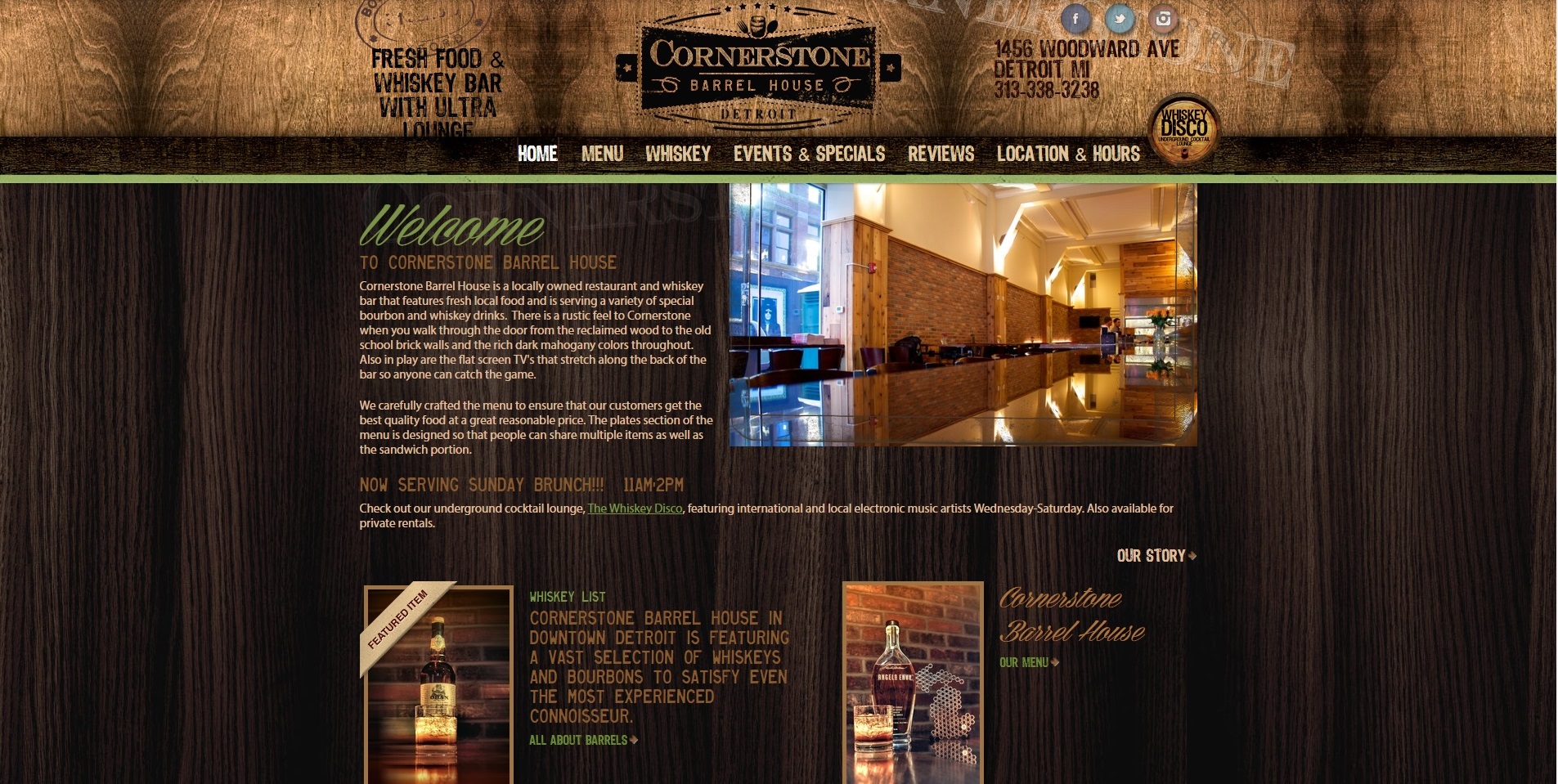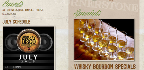 Деревянная текстура, приглушенный свет, четкая навигация: этот сайт идеально подходит для классического barrel house.