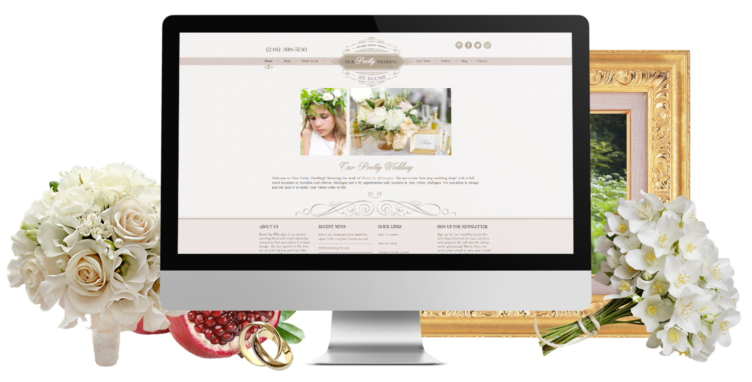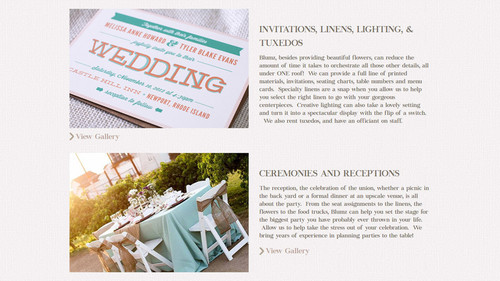 Милый сайт в нежной гамме и с изящными шрифтами настраивает на то, что здесь лучше всего помогут сделать свадьбу столь же милой и изящной.